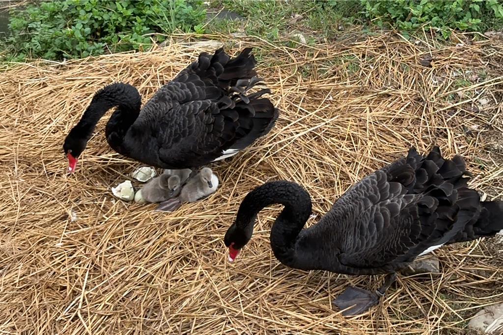 針對這群黑天鵝「新成員」,幕後功臣汽修達人兼大久繁殖場經營者范進軒也分享了他的觀察。身兼黑手精神與育種專才的他,長年投入禽類人工繁殖,去年更曾促成疣鼻天鵝自然孵化。